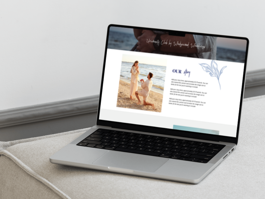 Perfect for beach, seaside, and destination weddings, this template blends sandy neutrals, soft blues, and natural textures with clean typography for a timeless, relaxed, yet elevated look.